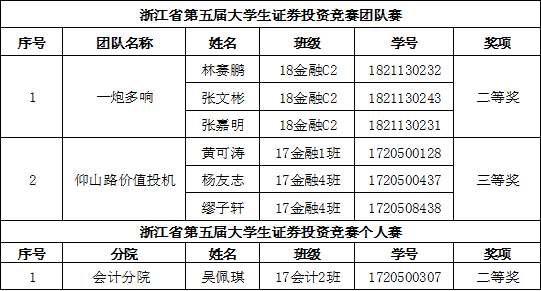 2019年10月26日,浙江省第五届“德邦证券同花顺杯”大学生证券投资竞赛团队赛在杭州电子科技大学落下帷幕。该学科竞赛由浙江省教育厅主办,是浙江省高校金融学科仅有的两项省级A类学科竞赛之一。对此,金融与经贸分院高度重视,在创业学院的支持下,分院做了大量的组织与宣传工作,全分院百余名同学报名参赛。经过团队组建、院内初选,共选送九支优秀团队代表我院参加本次竞赛。