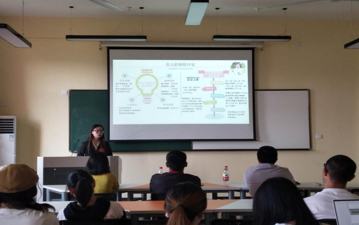 决赛正式开始后,晋级决赛的6支队伍分别为观众们展现了制作精美的PPT和对保险产品进行深入地阐述,每组演讲完毕由评委老师进行打分,然后按分数从高到低决定获奖名次。