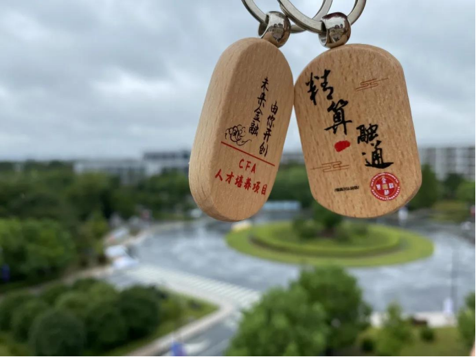 叮咚!你有一份小礼品待查收!学院贴心的为每一位新生准备了精致的小礼品——刻有“精算融通”图文的钥匙扣一枚。