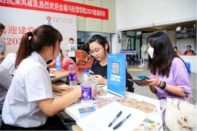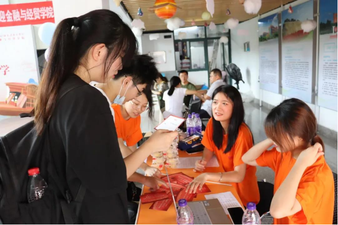 开学当日,每一位迎新志愿者都穿着统一的工作服,佩戴工作牌,英姿飒爽,整装待发,化身为金经er的“小导航”,为21级萌新们指引路线、搬运行李、解疑答惑、保驾护航。一颗志愿心,一片金经情,帮助新生寻找到前进的方向是每一位志愿者的初衷。