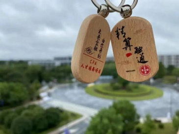 看!面前的礼包里面是什么呢?原来是学院贴心的为每一位新生准备的精美小礼物——刻有“精算融通”图文的钥匙扣一枚。