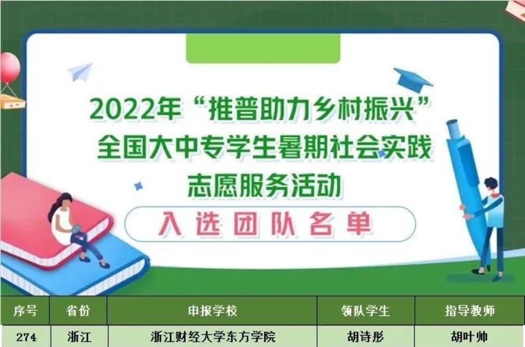 近日,教育部语言文字应用管理司组织专家对各大中专院校实践团队的申报材料进行评审,共有958支团队成功入选。我院胡诗彤同学带领的伟德BV1946“青力乡助,薪火相传”社会实践团队在指导老师胡叶帅的帮助与启发下,成功入选2022年“推普助力乡村振兴”全国大中专学生暑期社会实践志愿服务活动。