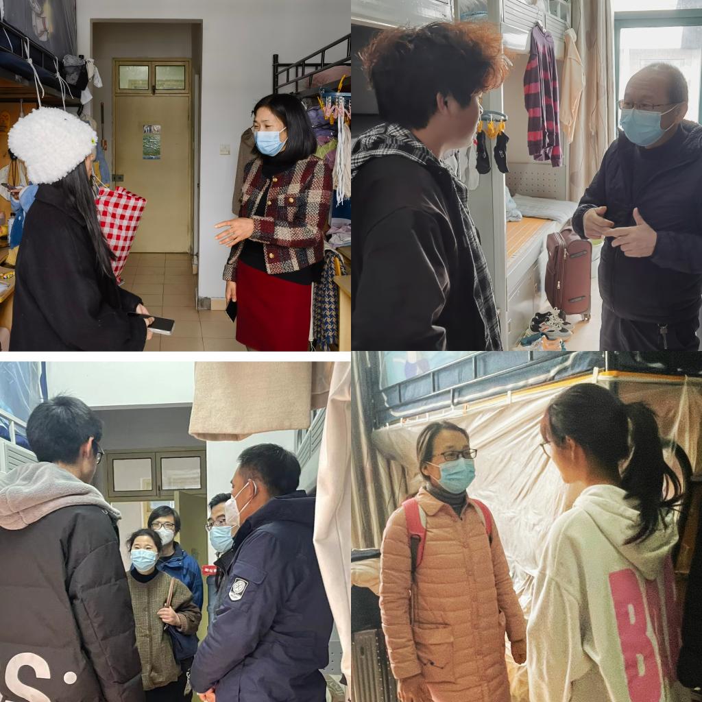 一声声亲切问候,一句句细心叮嘱,关怀细致入微。学院领导在宿舍中与同学们亲切交谈,了解线上课程学习状态、返乡安排、寒假规划等。同时,叶东惠院长叮嘱同学们要做好个人健康防护工作,强化安全意识和自我保护意识,外出时科学佩戴口罩,加强身体锻炼,树立青春活力的大学生形象。
