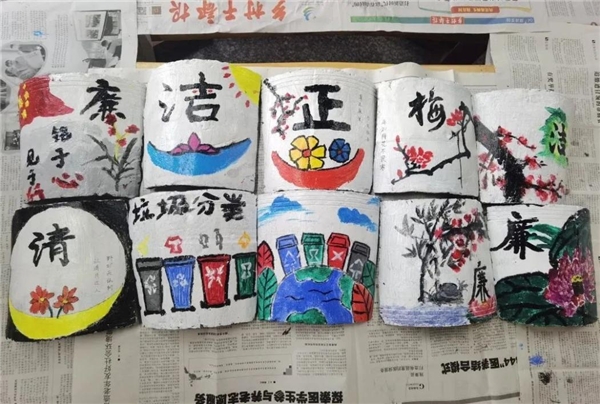 党员志愿者们开展了优美庭院清廉画活动。通过手绘瓦片的形式,以“莲花”、“梅花”等为题材,将绘画和廉政文化相结合,成功变废为宝,用新装的旧瓦装饰美丽的村庄,进一步深化了廉政教育、落实廉政建设,在潜移默化下提高了学生党员对清正廉洁的认识。