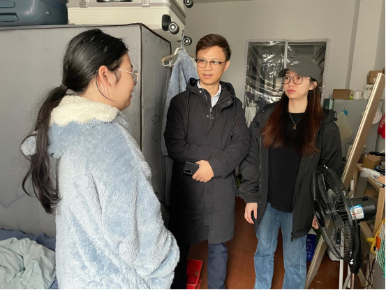 为进一步加强校外住宿学生管理,提高学生安全防范的意识,及时关注校外住宿学生的安全及学习生活情况,11月9日,伟德国际victor·1946源自党总支副书记蒋超及辅导员们一行走访看望校外住宿学生,并代表学院向他们送去亲切的关怀和问候。