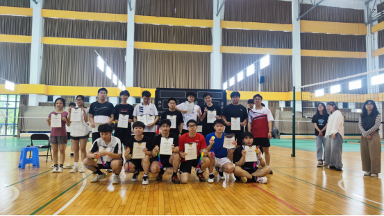 在4月20日的团体赛中,我院选手团结合作,齐心协力,合理的排兵布阵,不论对手实力如何,抓住时机全力挥拍,在沙泽挺,汪鋆杰,张扬,梁骏杰,蒋嘉圆五位羽毛球小将的共同努力下,我院代表队在上午的小组赛中面对不同学院的三支队伍以全胜之姿顺利的入围了下午的半决赛。在半决赛中面对工商管理学院,最终以2:1的实力晋级决赛。面对实力强劲的会计学院,我院队员并没有怯场,依然打出了我们的风格,最终以1:2惜败,取得了团体赛亚军的成绩。