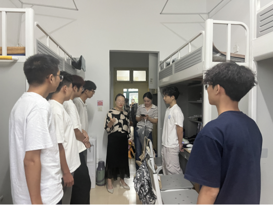 走访过程中,从“简约实用”的收纳技巧到“安全规范”的用电提醒,从“五湖四海”的文化特点到“互帮互助”的寝室氛围,老师们分享了自己的经验,并建议新生通过合理规划、创意装饰,将寝室打造成兼具学习氛围与生活温度的“第二个家”。同时,强调了寝室安全的重要性,倡导“绿色、健康、和谐”的装饰理念,鼓励同学们发挥集体智慧,通过合作布置增进室友情谊,共同营造整洁有序、富有朝气的住宿环境。一句“让寝室因你们而美丽”的暖心话语,让新生们感受到学院对生活细节的关怀,更激发了大家着手打造“新家”的热情。