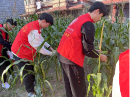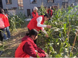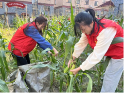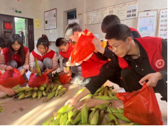 活动最后,志愿者们将玉米分袋装好,带着分好的玉米去看望村中的老人,陪同老人聊聊天,询问他们的近况,给予他们温暖。