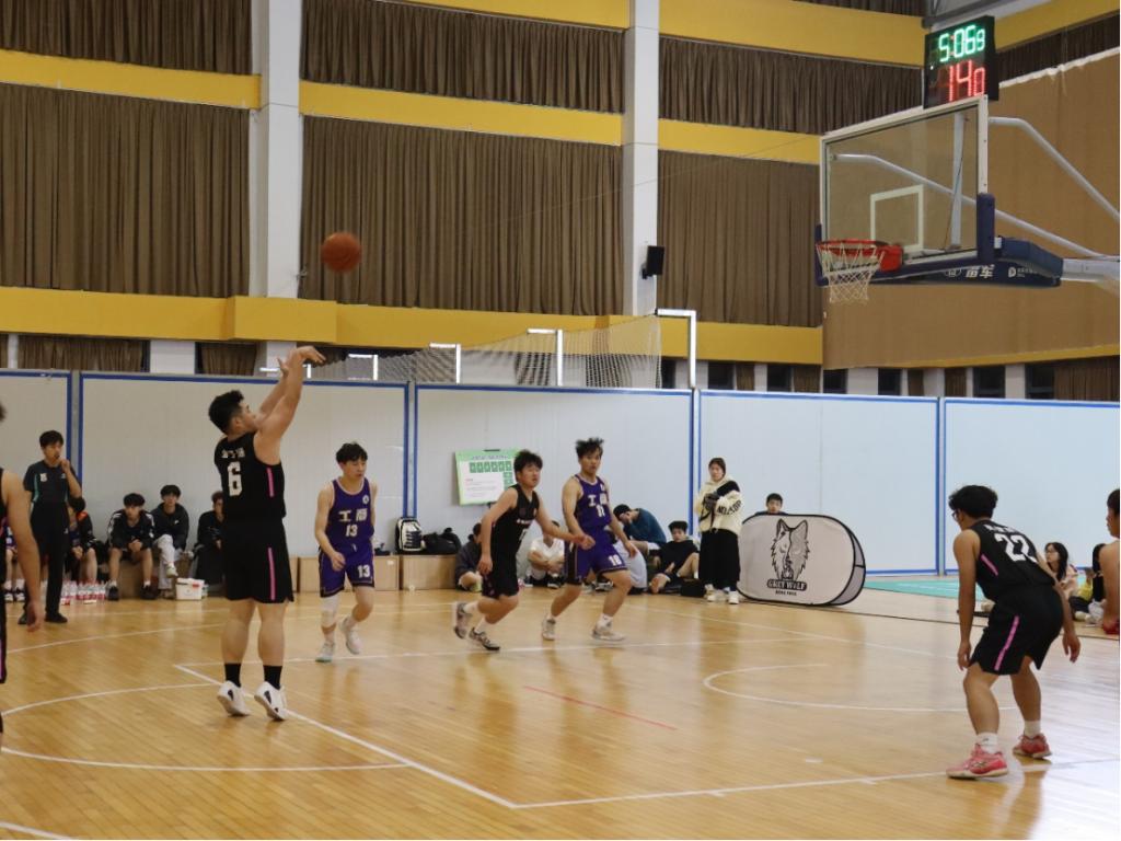 中场休息结束,下半场比赛战火重燃。我院队员在连续两日高强度激战下,仍怀夺冠壮志,以钢铁般信念咬牙坚持。比分渐被拉开时,邵天磊、金子涵挺身而出,前者三分入网,后者“打三分成功”,振奋士气,比分缓缓迫近。然而,比赛时间逐渐临近尾声,尽管我院球员全力追赶,但最终仍惜败对手,荣获亚军。