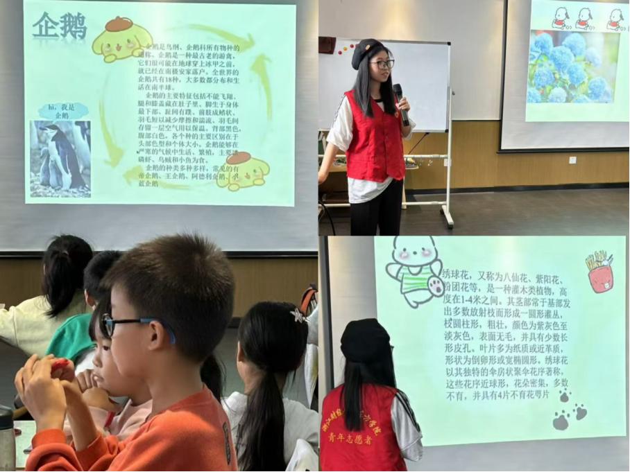 在抢答环节中,小朋友们热情高涨,不仅了解了企鹅在极地的独特习性,还领略了绣球花的独特魅力。从企鹅的耐寒本领到绣球花的花语之美,每个知识点都像是智慧的火花,点亮了小朋友们的好奇心。
