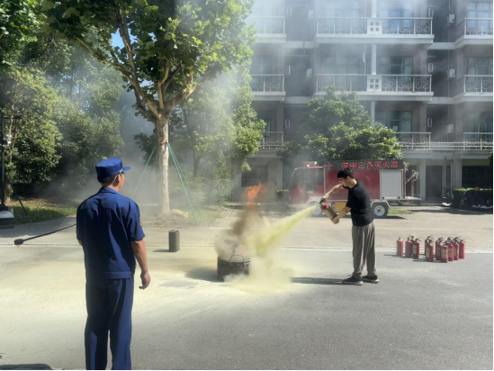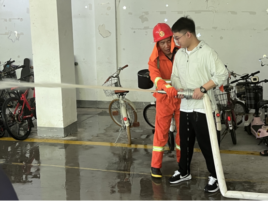 为了提高学生的火场自救能力,消防大队宣传员在7寝与9寝之间为我院留校教职工及学生现场讲解消防用具、消防知识以及求生技能,演示了灭火器、水枪、微型消防站的使用方法,并邀请教职工及学生代表上前体验。