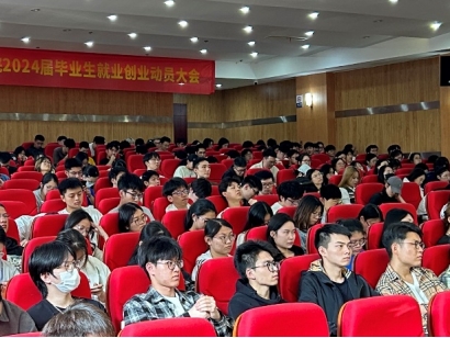在动员会中,首先是黄文平老师讲话,他充分肯定了学院往届毕业生取得的优秀成绩,与此同时也对在座的2024届应届毕业生寄予深切的期盼,并提出了更高的要求;他鼓励同学们积极考公和深造,对想要创业就业的同学也表示肯定与支持。但同时也提醒同学们要加强先就业再择业,先就业再创业的意识。最后,他强调面对未来的人生道路大家要放平心态,倡导大家以更加积极的态度去面对困难。