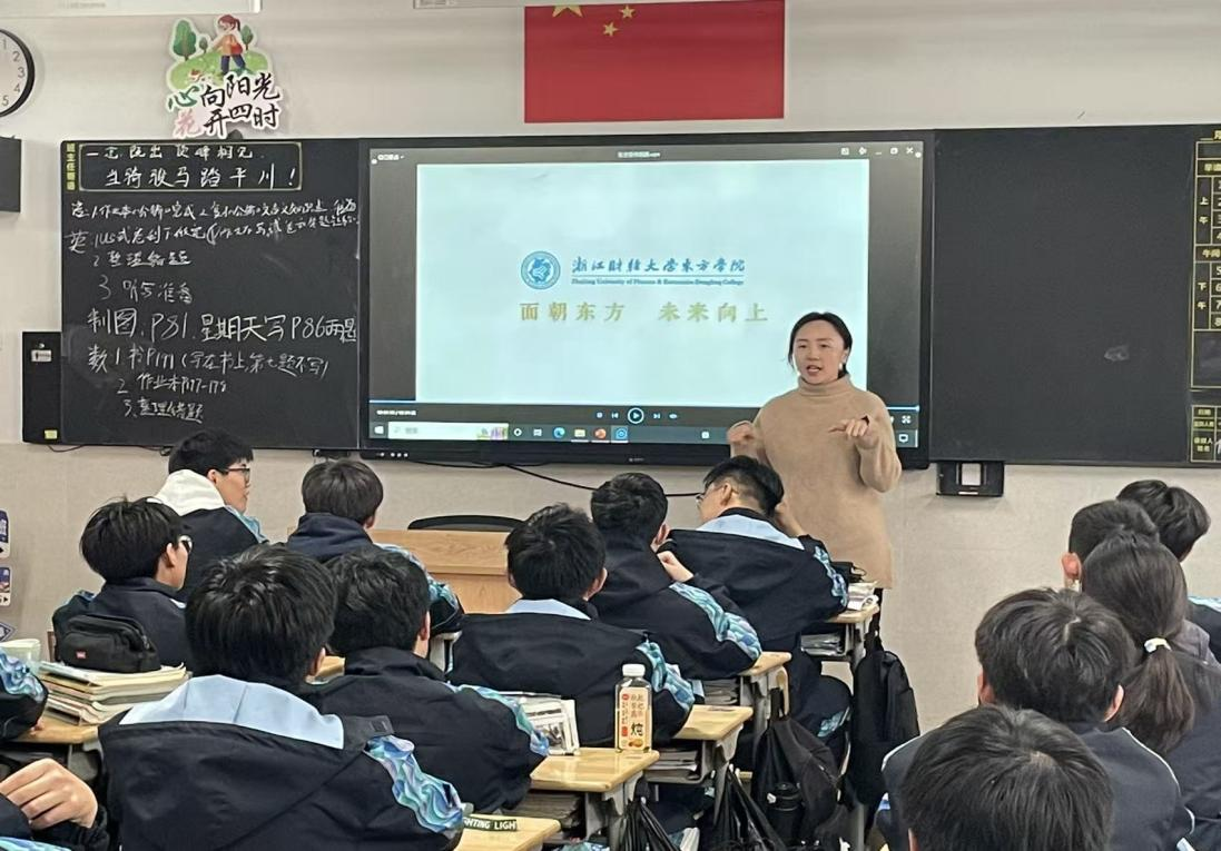 王琳老师以生动鲜活的案例,全方位描绘了丰富多彩的大学画卷。她从学术探索、社团活动、志愿服务、社会实践等多个维度,分享了东方学院学子在校园中的成长轨迹,让中学生感受到大学不仅是知识学习的殿堂,更是能力提升、个性发展的平台。针对高中与大学的核心区别,王老师从学习模式、管理方式、自主空间等方面进行了细致解读:高中阶段以课堂教学为主、目标相对集中,而大学更强调自主学习、个性化发展,需要同学们主动探索、合理规划。此外,她还聚焦 “时间管理” 这一关键话题,结合高校学习生活的实际场景,分享了制定学习计划、平衡学业与课余生活、高效利用碎片化时间等实用技巧,为同学们即将到来的大学生活提供了宝贵参考。