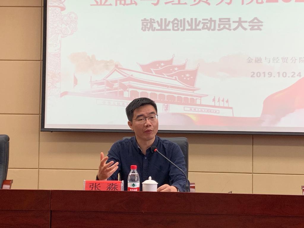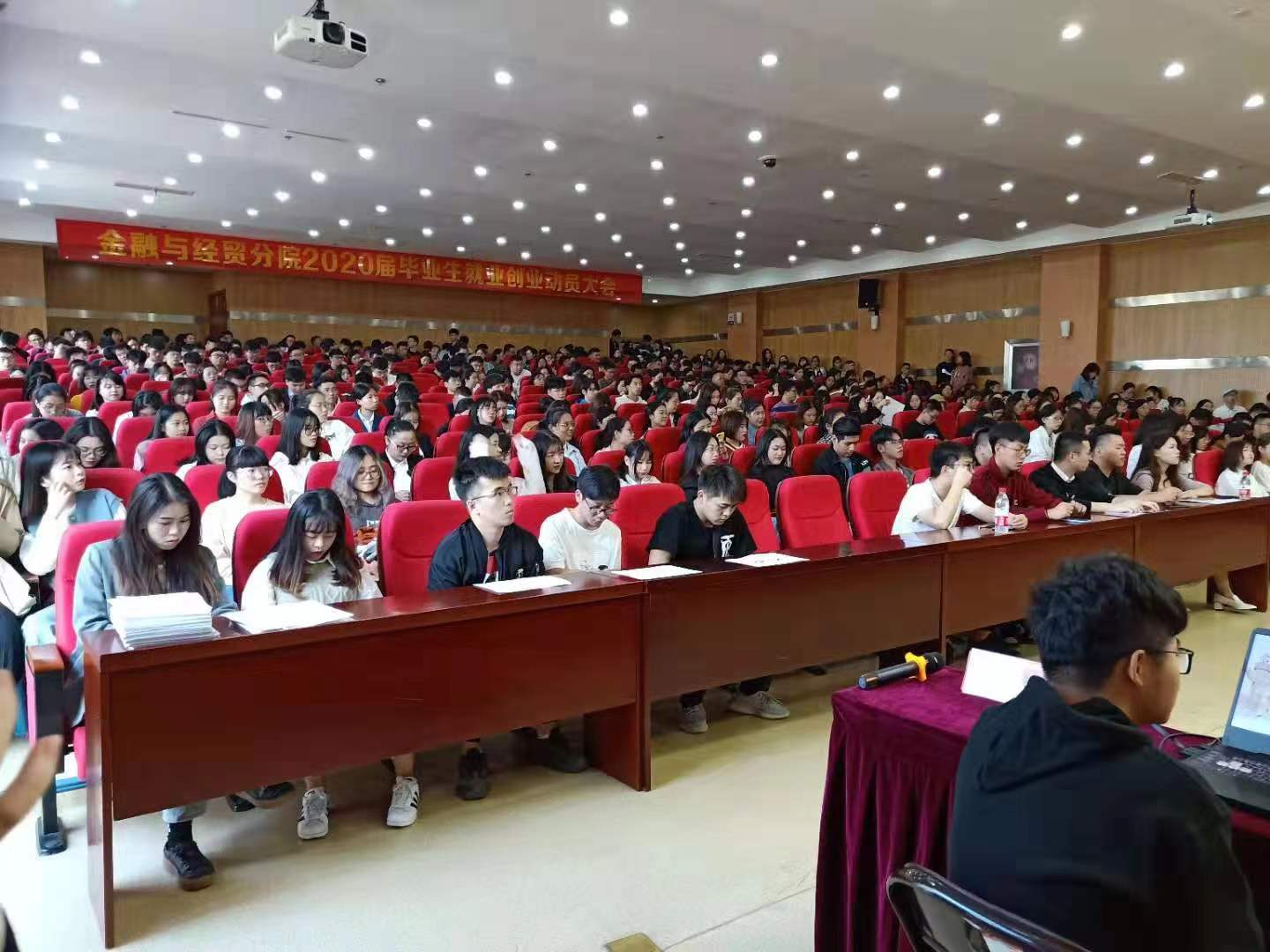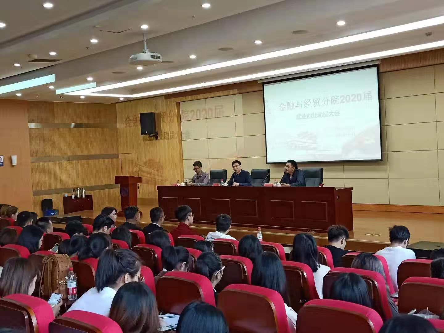 10月24日上午,金融与经贸分院为促进毕业生高质量就业,在学术二报举办了分院2020届毕业生就业创业动员大会。伟德BV1946党委副书记张淼老师、学工部副部长蒋超老师、金融与经贸分院党总支书记黄文平老师、思政辅导员谢昕彤老师以及分院毕业生参与此次会议。此次会议由黄文平老师主持。