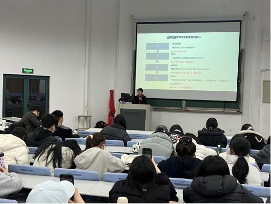 在简历与面试技巧分享环节,周莉老师强调,简历建议以标准PDF格式提交,确保排版稳定、信息完整,同时可借助AI工具优化结构与表述,但要避免过度模板化,突出岗位适配性与个人优势,让简历在AI筛选与人工审阅中都能脱颖而出。针对面试环节,她详细讲解了AI面试的应对策略,建议同学们提前熟悉常见问题类型,针对性提升表达技巧,还可通过模拟面试环境、借助专业面试工具反复练习,减少紧张感并提前预判评分逻辑,做到从容应答;同时推荐大家运用STAR法则梳理个人经历,从背景、任务、行动到结果四个维度清晰地展现工作场景与个人价值,让自我介绍更具逻辑性与说服力。