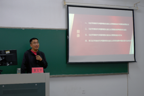 黄文平老师从习近平新时代中国特色社会主义思想创立的社会历史条件、主要内容、世界观和方法论、历史地位等四个方面,详细阐释了马克思主义中国化时代化新的飞跃的深刻意涵与当代价值,深刻阐明了习近平新时代中国特色社会主义思想的理论内涵和重大意义。他指出新时代大学生应以深入学习贯彻习近平新时代中国特色社会主义思想主题教育为契机,全面深入学习二十大精神、紧密结合实际,脚踏实地做到实处,用初心践行党员使命,用行动彰显青年作为。