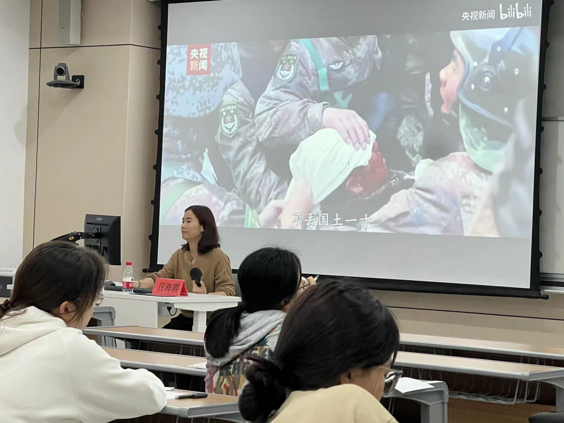 第一部分的主题是“追忆往昔,探寻中国共产党的精神之源”,习主席指出:“牢记和践行为中国人民谋幸福,为中华民族谋复兴的初心使命,是贯穿我们党百年奋斗史的一条红线”。任老师通过讲述一些革命前辈如张贵斌、张富清、张桂梅等具体事例让同学们更加深刻认识到践行初心、担当使命是精神本色。