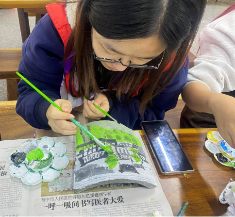 活动伊始,学生党员在东升村工作人员的指导下,以“乡村文明、乡村建设、清正廉洁”为主题,尽情发挥想象,古朴的传统文化和现代彩绘完美地融合在一起,使原本单调的瓦片增色不少,通过“方寸世界”展现了乡村的美丽景色,形成了一幅幅别具一格的“瓦片彩绘画”。