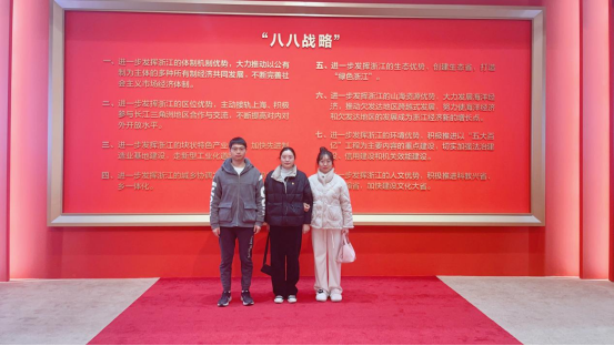 “八八战略”是习近平同志给浙江倾情擘画、量身定做的总纲领总遵循,是省域发展的全面规划和顶层设计。11月22日,为进一步巩固深化学习贯彻习近平新时代中国特色社会主义思想主题教育成果,深入学习贯彻习近平总书记考察浙江重要讲话精神,教工党员金轶前往浙江展览馆参观“大道之行——‘八八战略’实施20周年”大型主题展览。通过参观展览活动,我深入了解了习近平总书记指导下的浙江发展历程,并从中汲取精神力量,,把学习成效转化为学院建设的生动实践,为学校和学院建设贡献力量。
