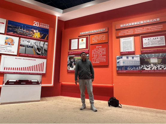 11月2日,为深入学习贯彻习近平总书记考察浙江重要讲话精神,持续推动“八八战略”走深走实,教工党员蒋超同志前往浙江展览馆参观“大道之行——‘八八战略’实施20周年”大型主题展览。游走在文字、照片、视频和实物模型构筑起来的展览长廊,穿梭于“伟大擘画”、“精彩蝶变”、“勇立潮头”三大篇章,扑面而来的是鲜活生动,感人至深的20年。过去的20年是波澜壮阔的20年,过去的20年也是承前启后、继往开来的20年。大道之行,壮阔无垠。这20年,我们真切感受习近平新时代中国特色社会主义思想磅礴的实践伟力,真切体会中国特色社会主义在之江大地获得的巨大成功!