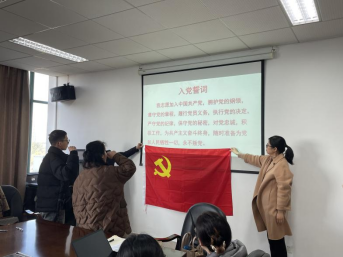 会议结束之际,支部副书记毛小敏带领陈铭豪同志进行入党宣誓。