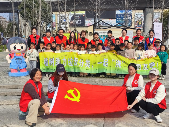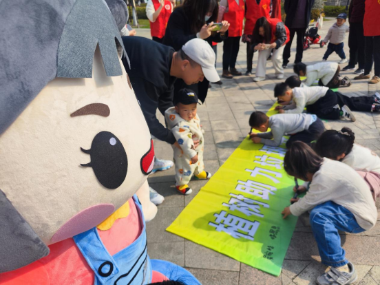 活动伊始,学生党员志愿者向小朋友们讲解此次活动的流程,强调了3月12日植树节以及生态环境保护的重要性,组织小朋友们在“植树助力垃圾分类,一起浇个朋友吧”宣传横幅上签名,让生态环境保护潜移默化般的刻入心中,润物无声,入脑入心,行成于思。
