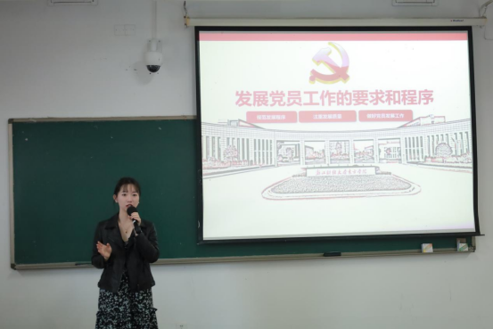 第二期,孙琪老师围绕入党流程进行授课。首先,孙琪老师向大家讲解了发展党员工作的相关要求,要坚持“三大”原则:坚持党章规定的党员标准,始终把政治标准放在首位;坚持慎重发展、均衡发展,有领导、有计划地进行;坚持入党自愿原则和个别吸收原则。然后,孙老师对发展党员工作的程序进行了介绍,第一阶段是入党申请人的教育培养,第二阶段是入党积极分子的确定和培养教育,第三阶段发展对象的确定和考察,第四阶段是预备党员的接收,之后就是预备党员的教育、管理和转正。通过此次学习,加深了同学们对党员发展工作流程的理解,感受到党务工作的严谨性,对确保学院发展党员工作程序的严谨规范起到推动作用。