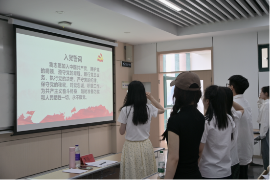 会议结束之际,全体党员、预备党员起立进行入党宣誓。