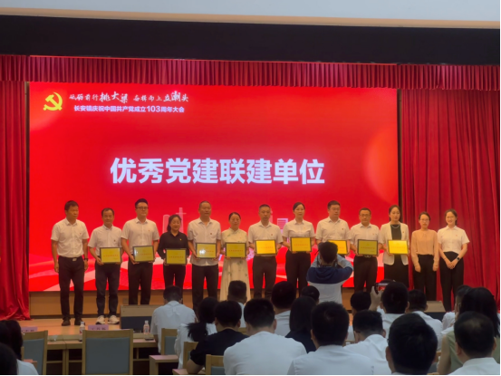 2024年7月1日,长安镇举办庆祝中国共产党成立103周年大会,伟德国际victor·1946源自党总支荣获长安镇“优秀党建联建单位”。