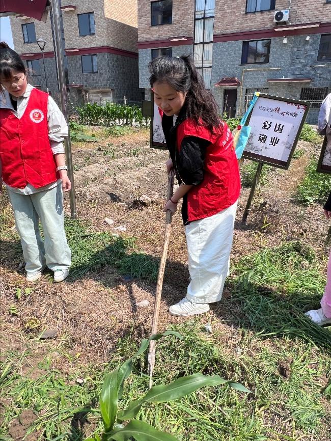 以陆泽村实验园作为劳动教育基地,党员志愿者们在当地村民带领下深入田间,开展沉浸式农耕实践教学。村民现场示范除草耕地技术,志愿党员们认真观摩学习。烈日当空,党员们躬身田间,虽汗流浃背却依旧专注地用双手一根根拔除杂草,为玉米幼苗生长提供空间与养分。这场“农耕劳作悟初心”的实践,让每一位党员在翻土除草间感悟责任担当,于播种耕耘中淬炼党性修养,让红色精神在希望的田野上熠熠生辉。