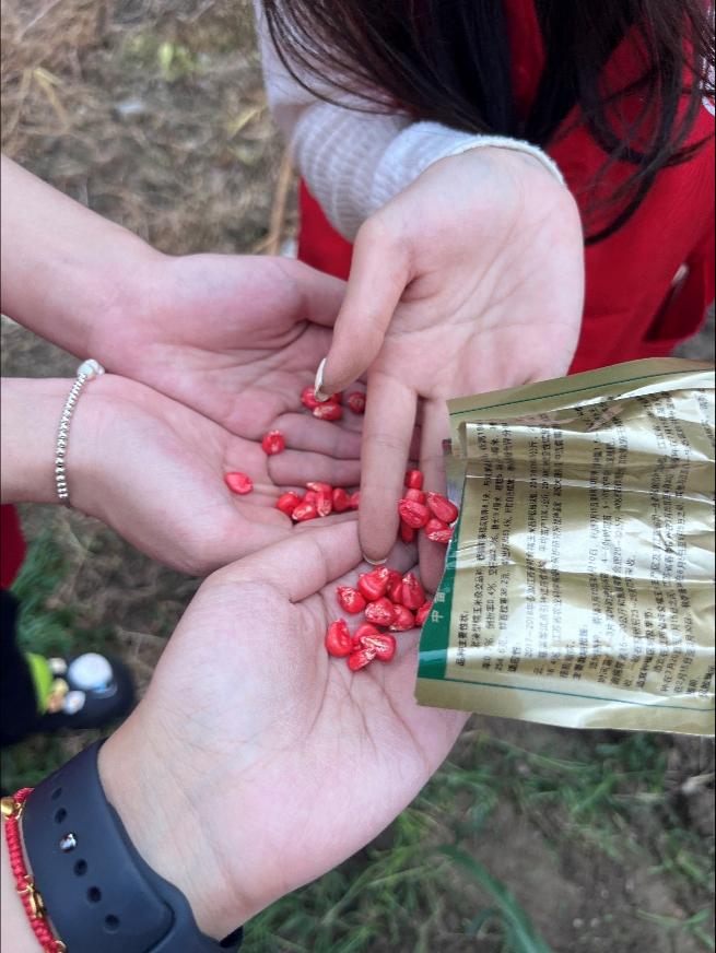 除草过后,部分学生党员还体验了播种玉米。烈日下,大家专注于手中的工作,汗水悄然滑落却无暇顾及,全身心投入到玉米播种中。实践结束后,学生党员们组成学习交流小组,围坐在一起,你一言我一语,纷纷分享自己在玉米播种实践中的所感所悟,在泥土与汗水中收获了书本之外的宝贵知识。在与当地农民的交流中,学生党员们深刻体会到“从群众中来,到群众中去”的工作方法,认识到只有扎根泥土,才能真正理解乡村振兴战略的重大意义,让理论知识在土地中生根发芽。