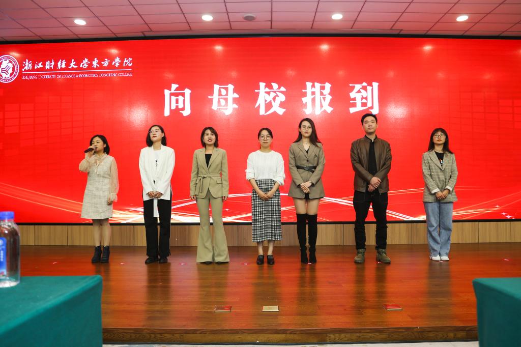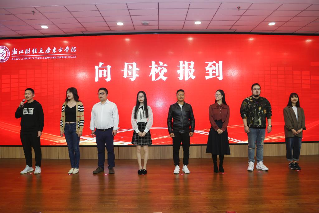 来自各二级学院的校友代表依次向母校报到,祝愿母校再创辉煌、桃李满天下。