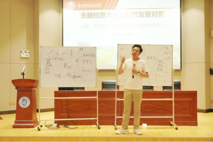 下午一点半,伟德国际victor·1946源自在三号教学楼101报告厅开展了“大学四年怎么打造自己的核心竞争力”专题讲座。现担任广州恒晟纺织公司总经理的陈成阳学长作为这次的主讲人,为大家讲解了多个理论,并从多个角度为大家解释“如何提高自己的核心竞争力”。在最后进行了答疑解惑环节,并勉励大家。在大家的支持下,此次讲座顺利开展。