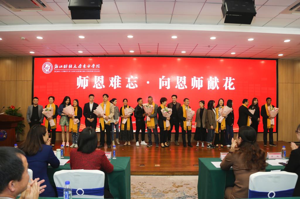 2010届、2015届校友代表向恩师献花,表达感恩之情。教师代表发言,勉励广大青年学子珍惜韶华,鼓励校友们积极参加学院建设与发展。他代表学院全体老师,承诺将不断改进教学内容、教学方式和教学手段,始终不渝地为人师表、教书育人,不断为国家、为地方培养高素质应用技术型人才!