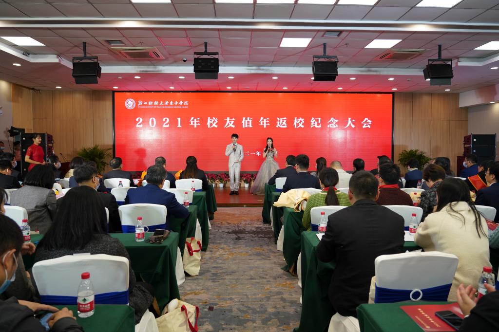 亭鹅群引笙歌,冬菊奕然校友来。2021年11月13日,学院举行2021年校友返校纪念大会暨校友返校日活动。浙江财经大学副校长董进才,学院院长、校友会会长叶东惠,党委书记、校友会会长申屠莉,原东方学院院长、党委书记韩玲珑,原东方学院党总支书记马亦群,原校党委委员、东方学院院长黄董良,原东方学院院长、党委书记沃健,原校党委委员、东方学院党委书记邵毅平,及学院领导,相关职能部门、各二级学院负责人,2011届、2016届以及其他各届校友代表共200余人参加大会。