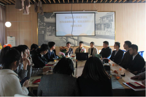 成立大会结束后,金融俱乐部和法律俱乐部的校友们共聚一堂进行交流研讨。大家一致表示金融与法律两个专业的密切度是非常高的,希望双方能搭建好合作平台,不仅要促进大家的职业发展,也要整合好资源寻求更多的途径回馈母校。